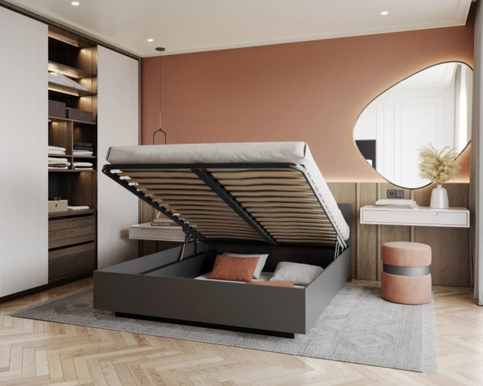 ŁÓŻKO LEWITUJĄCE LIMA TAPICEROWANE Z POJEMNIKIEM I STELAŻEM PODNOSZONYM