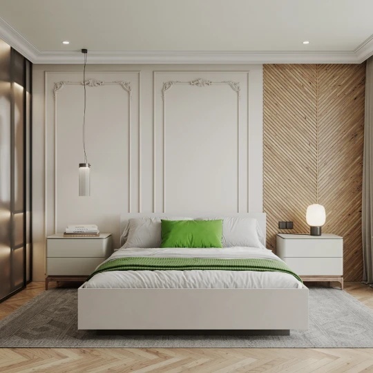 To nowoczesny, lekki wizualnie efekt — bardzo ceniony w małych sypialniach.